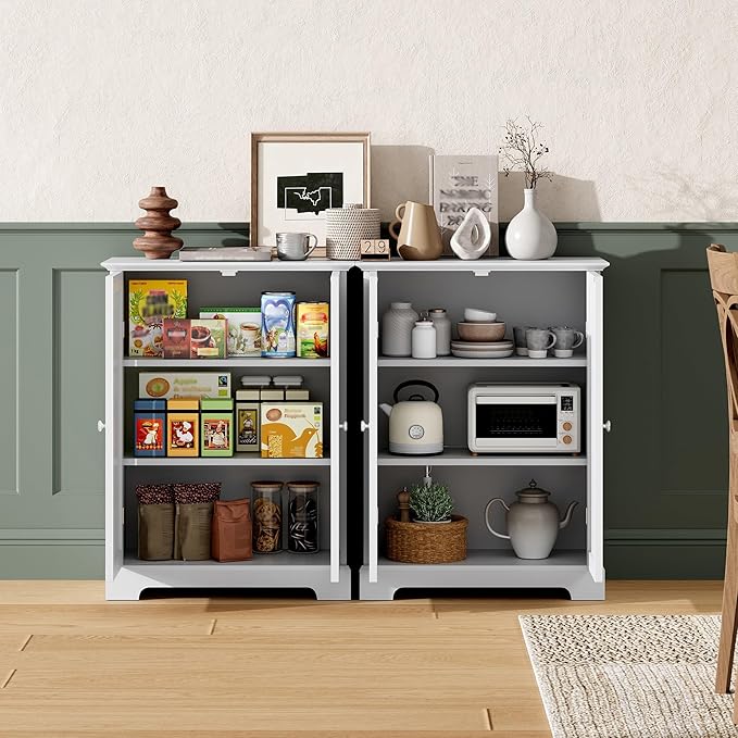 - 【Versatile Design for Every Space】This freestanding cabinet features a double-wire door design with a sleek white finish and metal handles, adding a touch of elegance and functionality that blends seamlessly with any interior decor