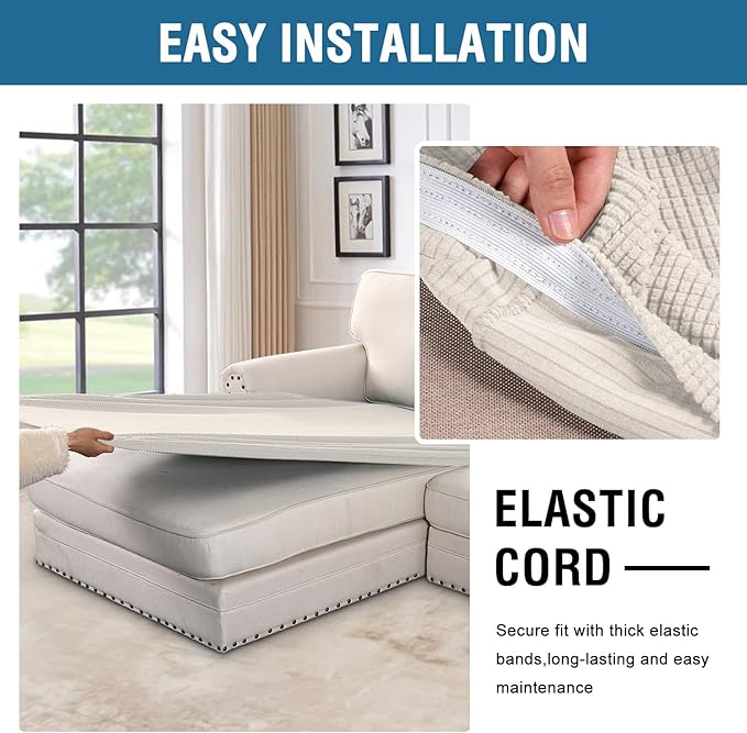 - NON SLIP: Effortless for installation (guide photos on selling page), sewn with thick elastic loops to cover the bottom edges. It is easy to install and take off, making your home more harmony, high recommended for both leather and cloth furniture