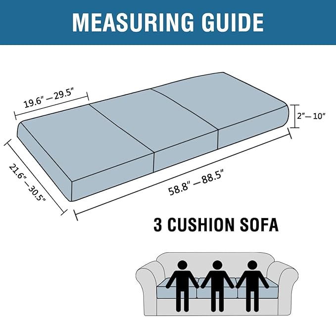 - GREAT FIT: Slipcover Set of 3. This innovated cushion slipcover is crafted from durable and soft high stretch knitted jacquard fabric. Sofa Seat Cover(fit total sitting area between 58.8-88.5 inches). Feature one-size-fits-most, kindly measure before ordering. Suitable for both T cushion and Box cushion styles