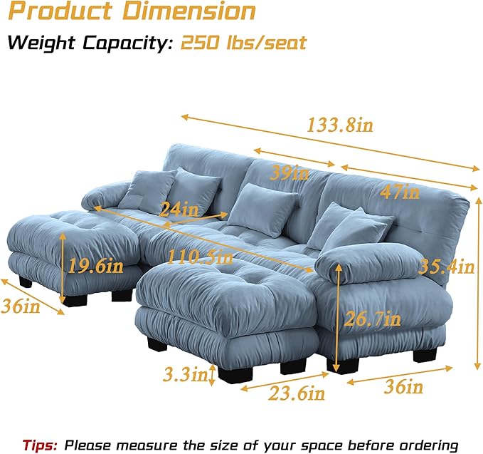 - 【Elegant Modern Couch】Upgraded oversized sectional sofa for better ergonomics, and it's more comfortable. The sleek look is complemented by sofa colors for a sophisticated modern style and a warm, cozy atmosphere, making this sectional sofa beautiful and comfortable