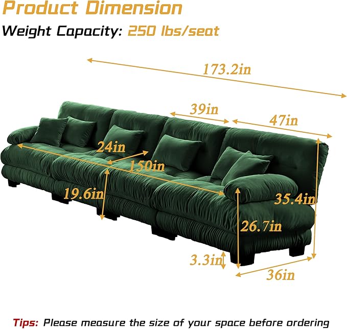 - 【Variety of Combinations】This sofa is available in 5 colors and 9 styles, single sofa, loveseat sofa, 3-seater, 4-seater, and a variety of combinations, you can also use it as an armless sofa. You can place it in your living room, bedroom, or office according to your needs