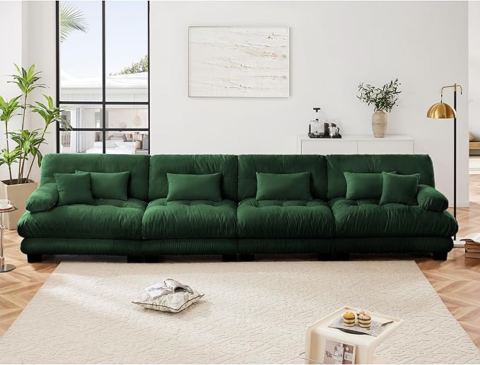 Modular Sectional Sofa, Comfy Cloud Couch 4 Seater Couch, Sectional Couches for Living Room, Modern Chenille Oversized Couches for Bedroom, Sleeper Deep Seat Sofa with Throw Pillows, Green