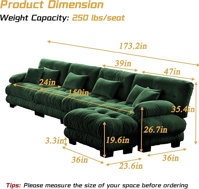 - 【Elegant Modern Couch】Upgraded oversized sectional sofa for better ergonomics, and it's more comfortable. The sleek look is complemented by sofa colors for a sophisticated modern style and a warm, cozy atmosphere, making this sectional sofa beautiful and comfortable