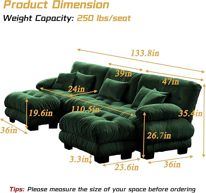 - 【Throw Pillow Included】Each seat of the deep seat sectional sofa is equipped with a matching pillow, providing a cohesive and stylish look while ensuring every moment spent on it is comfortable and supported