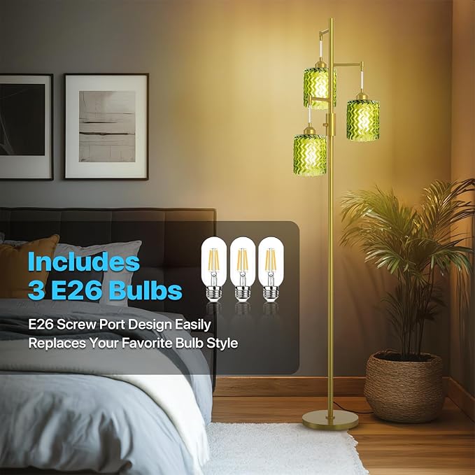 - Ready - to - Use Convenience:This crystal floor lamp comes with 3 matching E26 bulbs, saving you the trouble of extra purchases. Simply install it right after receiving the lamp and start enjoying it quickly — so you can effortlessly brighten up your daily life