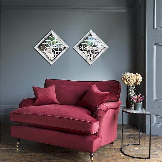 Boho Square Wall Mirrors Set of 2-12" x12'Decorative Mirrors for Wall Decor, BrownHandcrafted Mirror Panels Perfect for LivingRoom Bedroom Entryway Hallway (Grey)