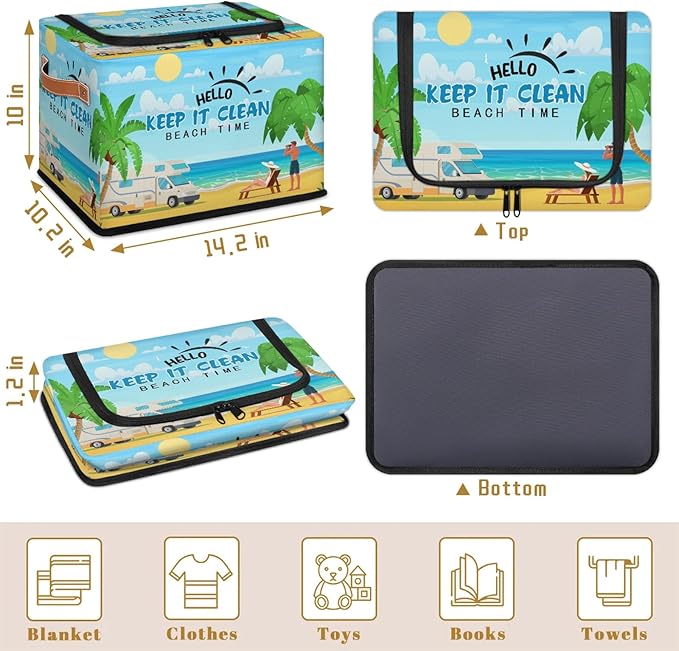 Rectangular Storage Baskets for Shelves - Waterproof Foldable Laundry Basket, Nursery Hamper, Reusable Toy Bin for Organizing Toys, Books, Clothes, Closet 14"x10.2" x10.4"(Beach)