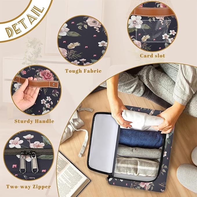 Rectangular Storage Baskets for Shelves - Waterproof Foldable Laundry Basket, Nursery Hamper, Reusable Toy Bin for Organizing Toys, Books, Clothes, Closet 14"x10.2" x10.4" (Flowers)
