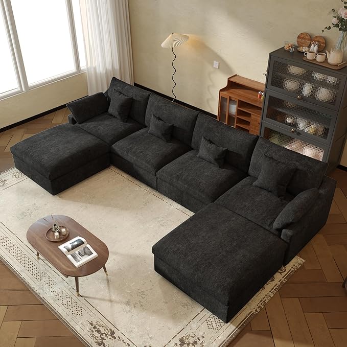 JACH U-Shaped Sectional Couches for Living Room, Cloud Sectional Couch with Deep Seat, 155.9" Modular Sofa with Chaise, Covers Removeable & Washable, Sofas Furniture for Living Room, Black