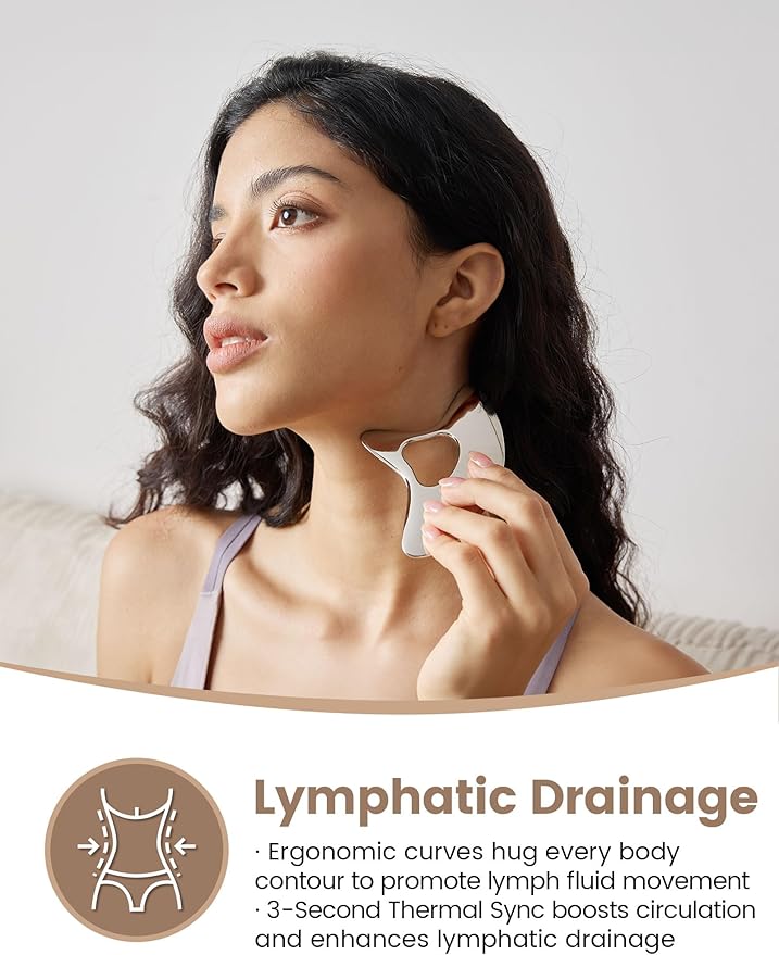 - Lymphatic Drainage Massager: Designed for full body sculpting, the lymphatic drainage massager fits body contours to target thighs, arms, etc. Rhythmically stretch skin to boost lymph fluid, helping reduce swelling and inflammation.