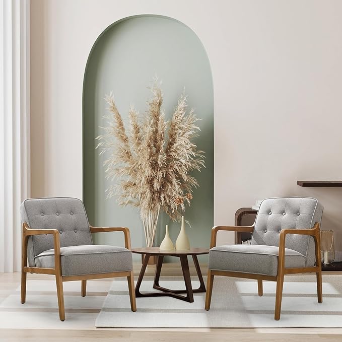 - MID-CENTURY AND SIMPLE STYLE: Simple design, Natural wooden structure, buttoned tufted design, and pastel color, our side chair for living room gives us peace and relax. Besides, classical design can meet the demands of most home decoration styles