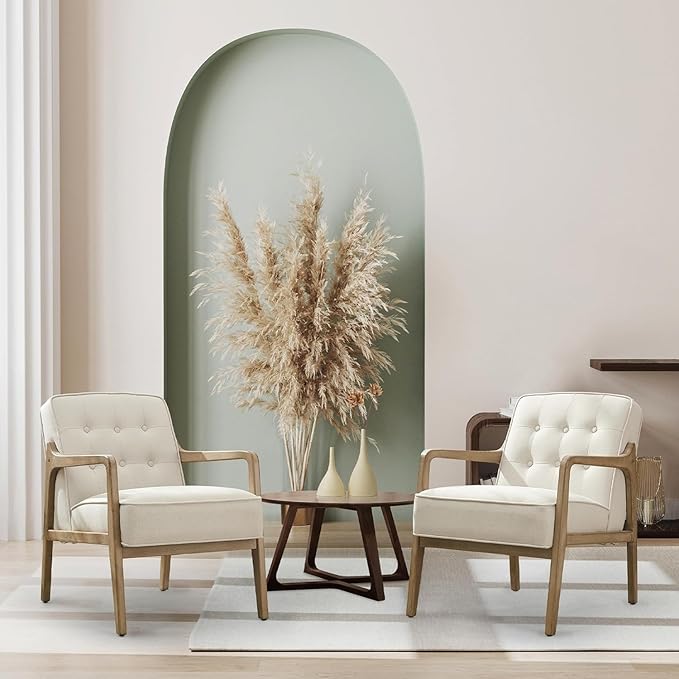 - MID-CENTURY AND SIMPLE STYLE: Simple design, Natural wooden structure, buttoned tufted design, and pastel color, our side chair for living room gives us peace and relax. Besides, classical design can meet the demands of most home decoration styles