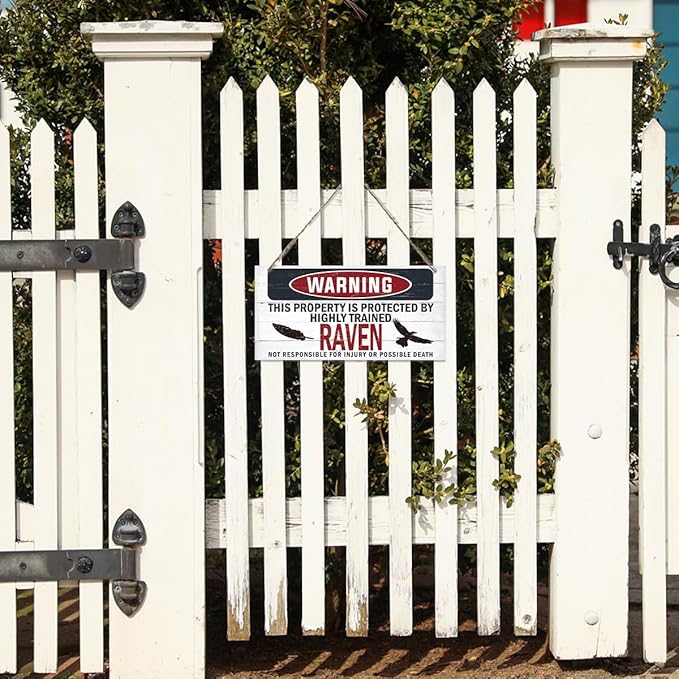Warning Sign, Raven Warning Wood Plaque Sign, Funny Door Signs, Decorative Wood Hanging Suspension Plaque, Farmhouse Wooden Wall Decor, Outdoor Hanging Wooden Signs