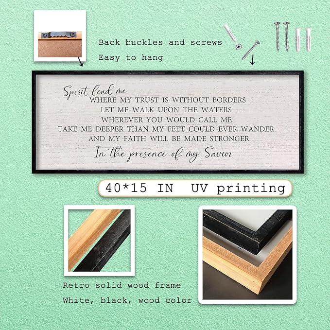 LuZhiQiang Spirit Lead Me Wall Art Decor 40"x15" Christian Scripture Sign Large Inspirational Quote Bible Verse Hanging Wooden Framed (Black)