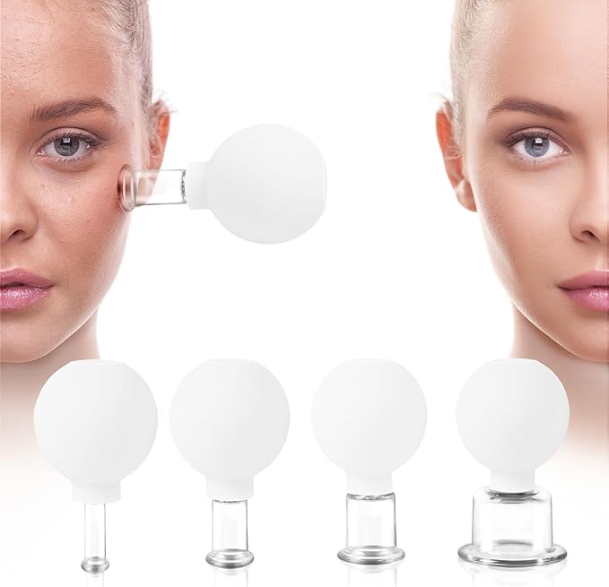 - Your Facial Cupping Kit: Includes four cups of different sizes, which can be used on the face, eyes, corners of the mouth, forehead, neck, abdomen, arms, back, and more. They are reusable. When using, hold the silicone part to expel the air, and then let it stick to the skin. Use it for 5 - 10 minutes every day, and obvious results can be seen within 1 - 2 weeks.