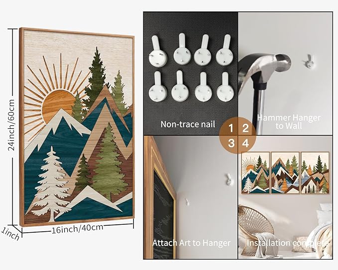 - Majestic Mountain Scenes: Enhance your decor with this breathtaking set of 3 framed canvases, featuring stunning metal mountain designs that celebrate the beauty of nature