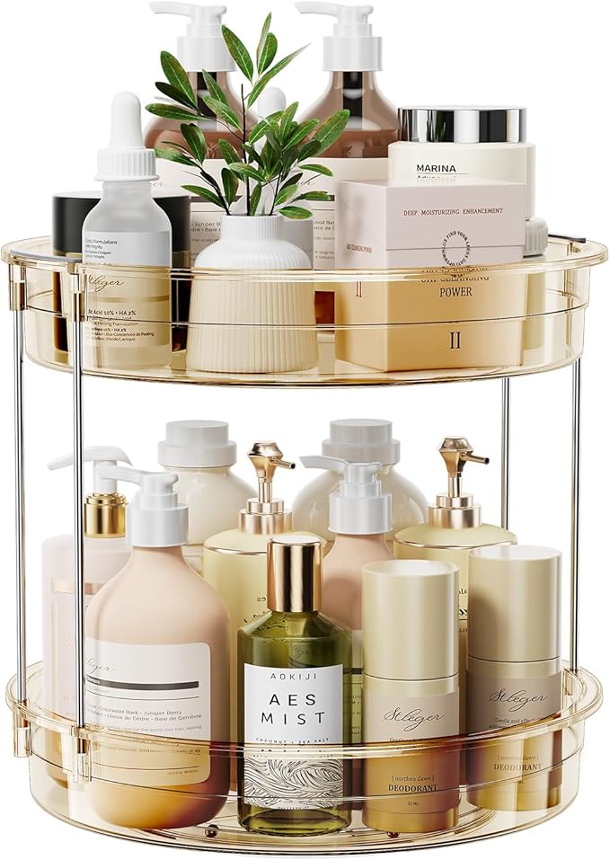 LAMU 12inch 2 Tier Lazy Susan Turntable Organizer Rotating Spice Rack Organization for Cabinet, Kitchen, Pantry, Countertop, Bathroom, Vanity, Medicine Cabinet Organizer, Amber