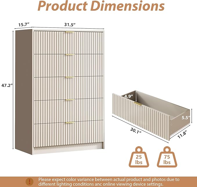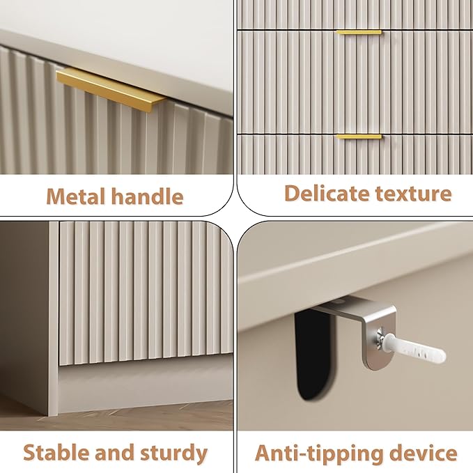 - Safety & Stability: Our fluted dresser features a dual anti-slip design, ensuring drawers stay securely in place, while anti-tipping straps provide added stability. The reinforced base and smooth damping system enhance structural integrity, offering reliable support for everyday storage needs.