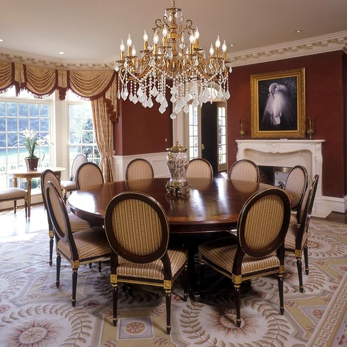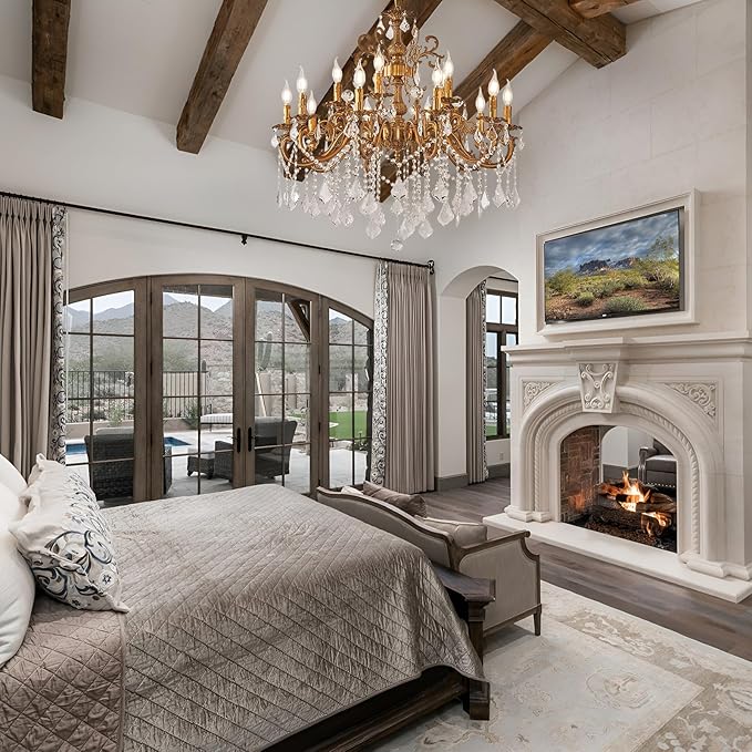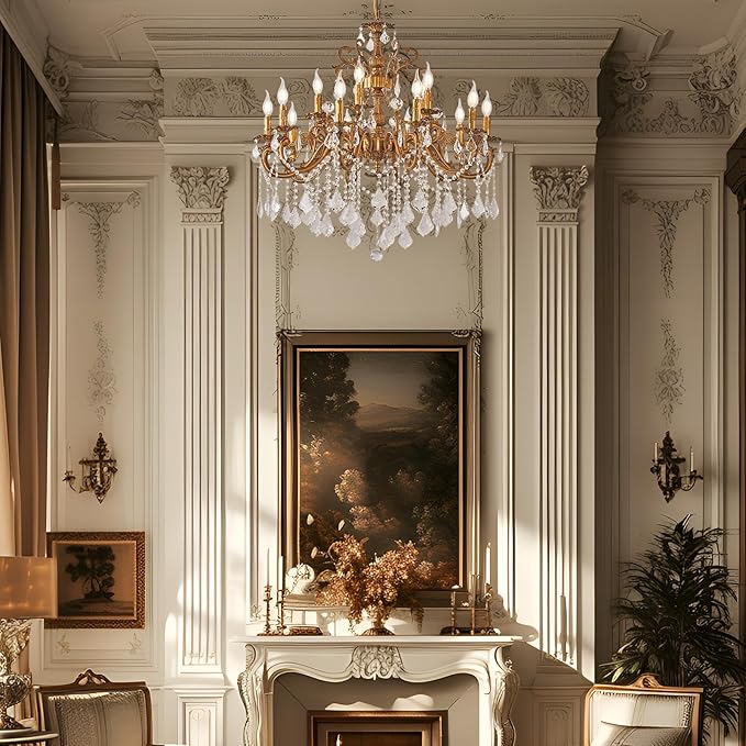 - This 10 Arms Crystal Candle Chandelier is a classic statement piecen with a beautiful antique gold finish, giving it a rich, old-world charm that complements classic, vintage, and even some transitional decors.