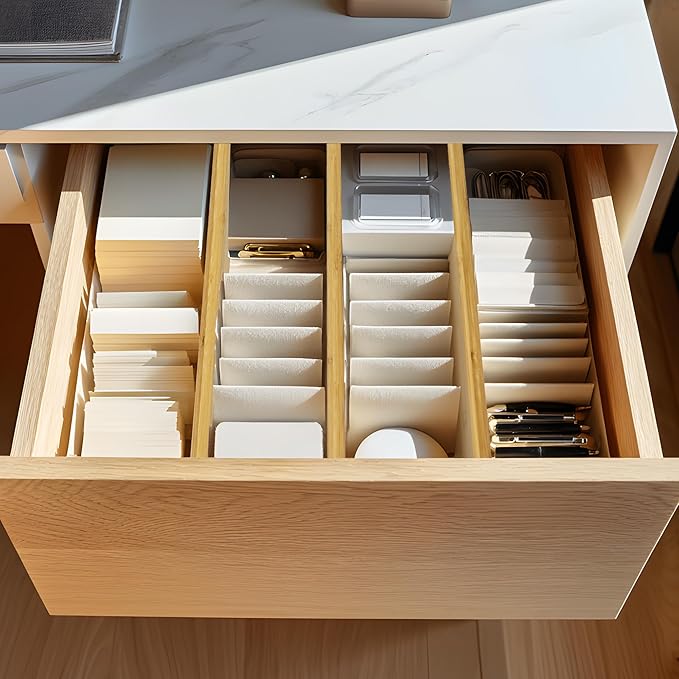 - High-quality Bamboo: Crafted from premium bamboo, these dividers are sturdier than plastic alternatives; The natural material matches drawer interiors, resists wear, and the built - in spring guarantees a firm grip—long - lasting organization for home/office