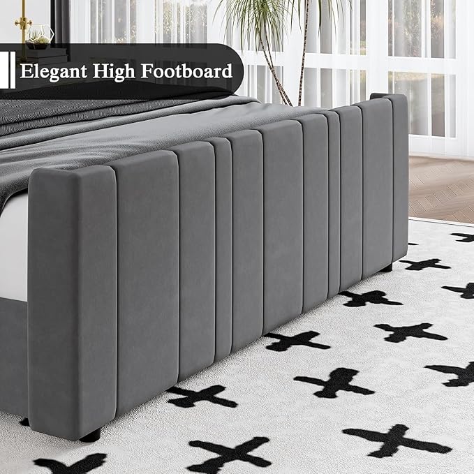 - Vertical Channel Design: This modern bed frame has an 47.3" headboard and 21.7" footboard to keep the mattress from sliding. The upholstered bed frame features velvet vertical channel in soft fabric and provides extra support for your neck and back