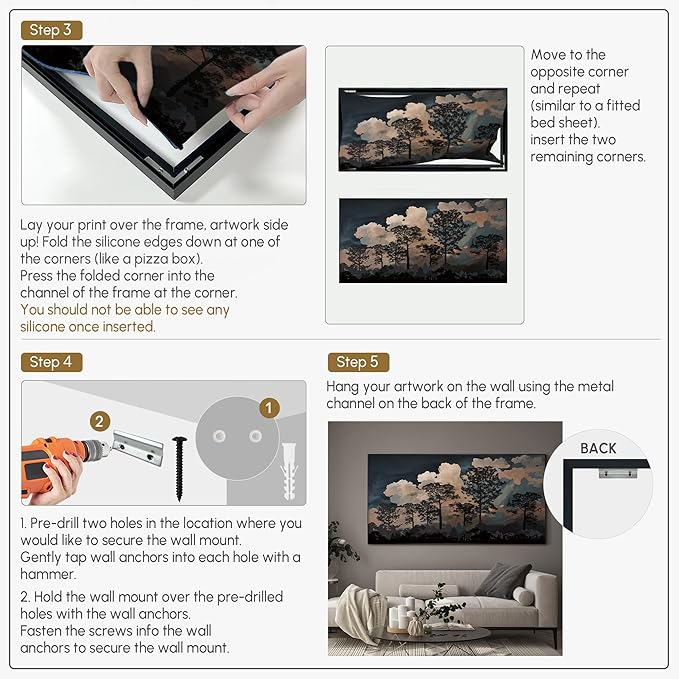 - Assembly Required: The artwork comes with the frame components unassembled. Don’t worry — setup is straightforward and tool-friendly. For best results and accurate alignment, we recommend two people to ensure a smooth assembly and a stable, secure wall mount.