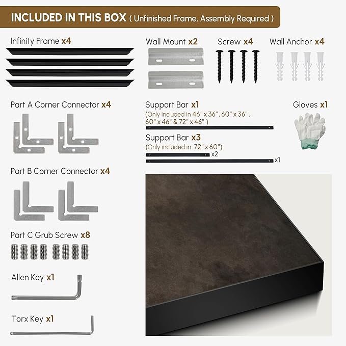 - Assembly Required: The artwork comes with the frame components unassembled. Don¡¯t worry ¡ª setup is straightforward and tool-friendly. For best results and accurate alignment, we recommend two people to ensure a smooth assembly and a stable, secure wall mount.
