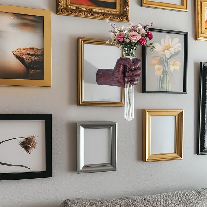 - Introducing our pride and joy, the Creative Wall-Mounted Sculpture featuring an exquisite hand-shaped design with a stunning test tube vase, adding a unique charm to your home decor.