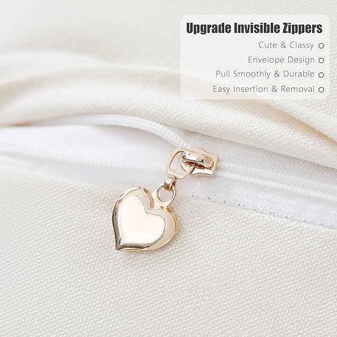 - INVISIBLE ZIPPER CLOSURE: Designed with a smooth heart invisible zipper, these cushion covers provide a seamless look while ensuring easy insertion and removal of pillow inserts. Our high-quality zippers enhance durability and smoothness compared to ordinary zippers, ensuring a struggle with a faulty zipper.