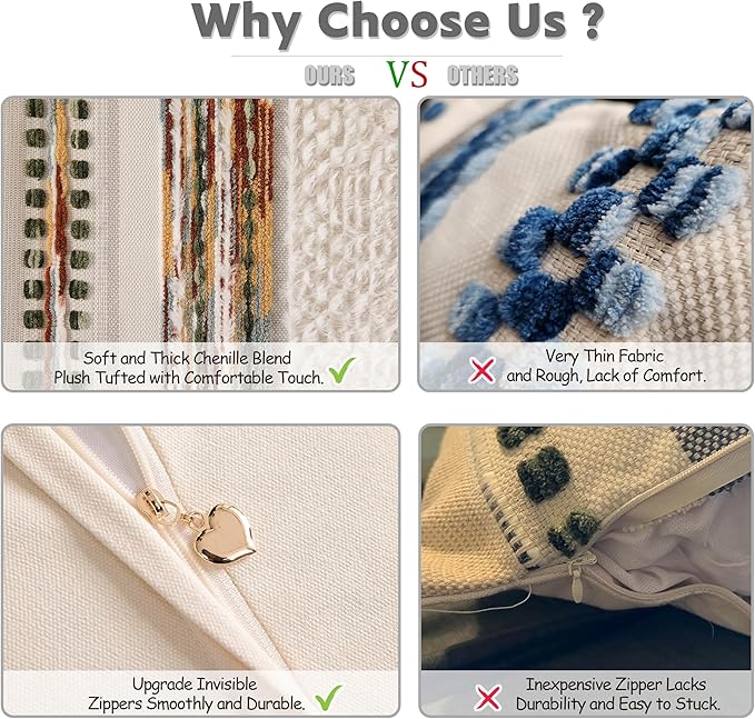 - PREMIUM QUALITY FABRIC: Made from a high-quality chenille and woven polyester blend, the throw pillow covers are ultra-soft and durable. The tufted design adds texture and dimension, creating a luxurious and inviting atmosphere.