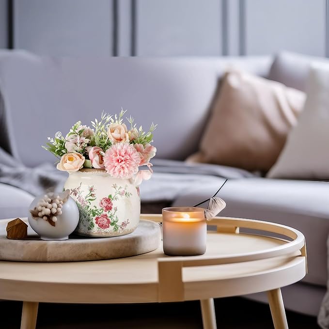 - Planters for Indoor Plants: this vintage plant pot measures 5.9 x 5.1 inches / 15 x 13 cm, giving you adequate space to house your indoor plants, suitable for shelves, coffee tables, or window sills; Its pink and green vintage French rose pattern ties together interior decor, making the planter a nice centerpiece and embellishing your space with a taste of antiquity