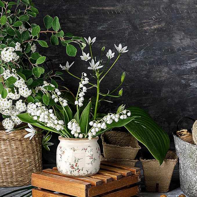 - Quality Ceramic Material: our vintage ceramic plants pot ensures made from quality ceramic, long lasting indoors; This planter is more than a pretty face, suitable for holding flowers, small plants, or faux arrangements while maintaining its form and charm over time, making it a companion for your indoor greenery