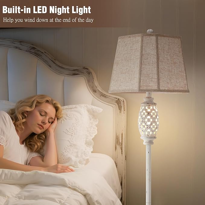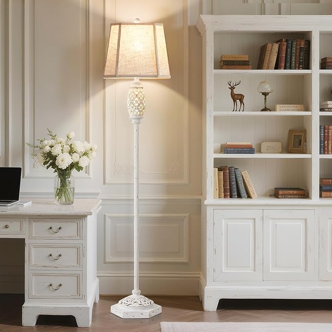 Luvkczc Rustic Floor Lamp with Floral Cutouts & Light, Vintage Farmhouse Style Standing Lamp Resin Floor Lamps for Living Room, Bedroom,Study (Bulb Included)
