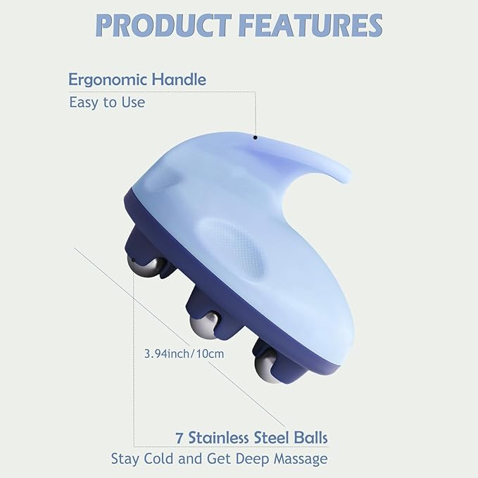 - Lymphatic Massage Roller: Our cellulite massager is equipped with a large grip, suitable for all kinds of hand shapes and is easy to massage. 7 large stainless steel balls help keep a cool feeling during the massage process, promote skin to reduce edema.