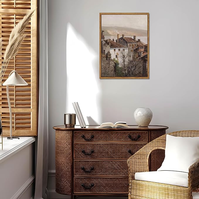 Floating Framed Vintage Canvas Wall Art, European Country Towns Wall Decor Oil Paintings Artwork, Rustic Farmhouse Posters Prints Pictures for Living Room Hallway Bedroom 8x10 inch