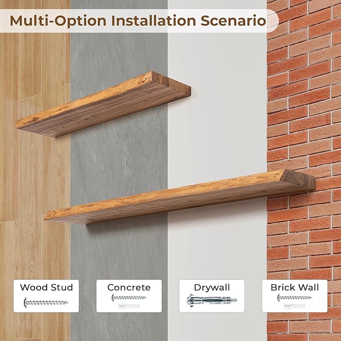 - Easy to Install: Complete with all necessary hardware and a detailed installation guide, these wood hanging shelves can be easily installed in just five minutes, making it simple to add a touch of natural beauty to any room in your home