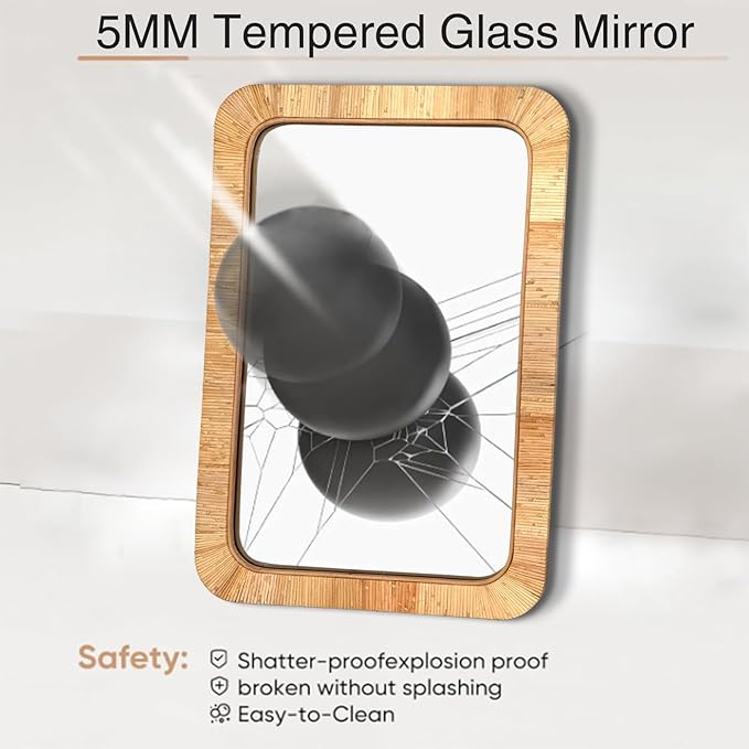 - 【Safety & Clarity】Our bathroom mirror featuring safety-tempered 5mm glass, our bathroom mirror is built for durability and enhanced protection. The advanced 5-layer design achieves superior optical clarity (90 CRI Color Rendering), providing pin-sharp, true-color reflections without distortion. Discover the perfect blend of safety and visual accuracy for your daily routine.