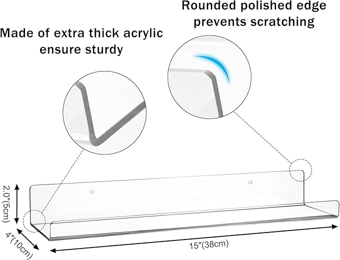 - STURDY ACRYLIC FLOATING SHELVES: Our floating wall shelves are made of premium acrylic, this clear shelf is lightweight, sturdy, and built to last. They are bound to add an elegant touch to any living space, making it both practical and visually appealing