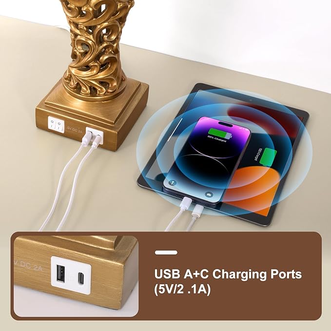 - Built-in USB Ports: Convenient USB A and C charging ports allow you to charge two devices at once, even with the lamp off. Such as charging your phone, tablet, Kindle or other electronic devices. Bringing convenience to you and your family.