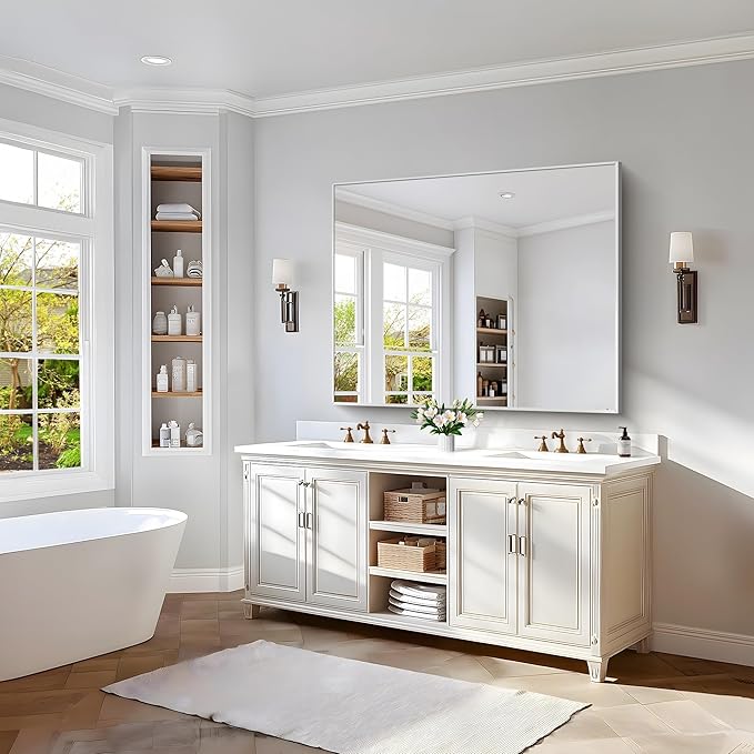 - STURDY PACKAGE: Bathroom mirror is not only protected with multiple layers of packaging to safeguard the glass, but also features reinforced corner guards to prevent scratches or damage to the corners during transportation