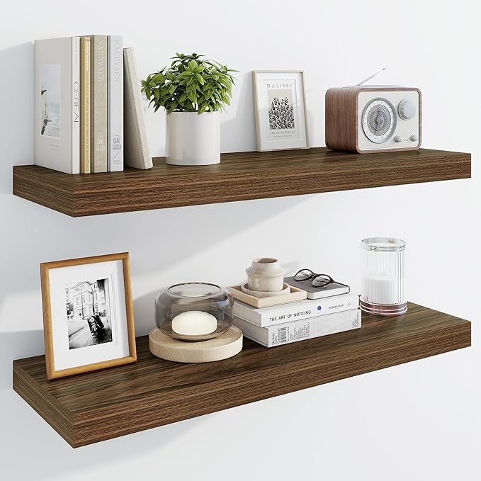 Marsmiles 30" Floating Shelves for Wall, Wooden Shelves with Invisible Brackets Set of 2, Rustic Farmhouse Wall Mounted Shelf for Kitchen Bathroom Living Room Study, Walnut