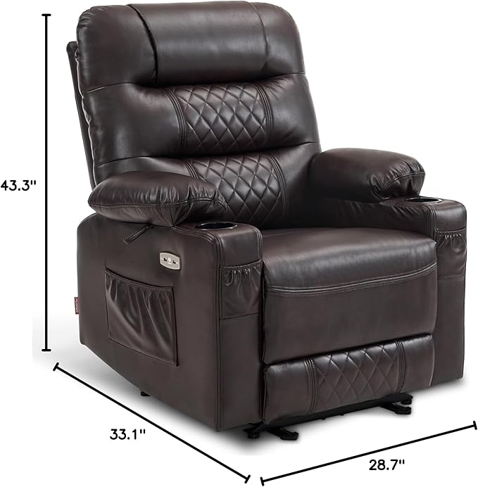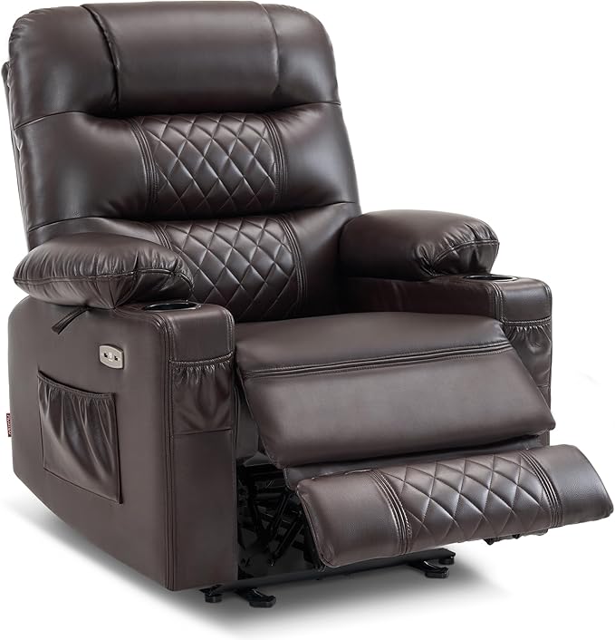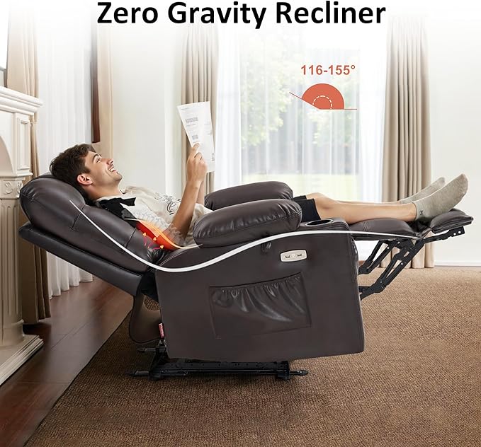 MCombo Zero Gravity Power Recliner Chair with Heat and Vibration Massage, Reclining Chair with USB Ports, Cup Holders for Living Room, Faux Leather PR621 (Brown)