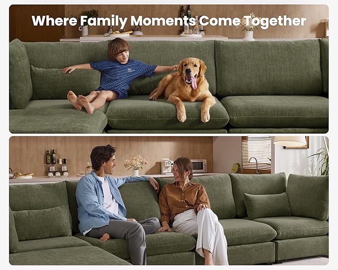 - 【Tool-Free Assembly in Minutes】Assemble your sofa in no time—no tools required! The modular design allows for quick and easy setup using high-quality U-shaped stainless steel connectors, ensuring a secure fit between each module. Reconfigure your sectional effortlessly and enjoy it in as little as 20 minutes. Perfect for those who value convenience and flexibility, this sectional offers a seamless assembly experience and provides total comfort from the moment it arrives