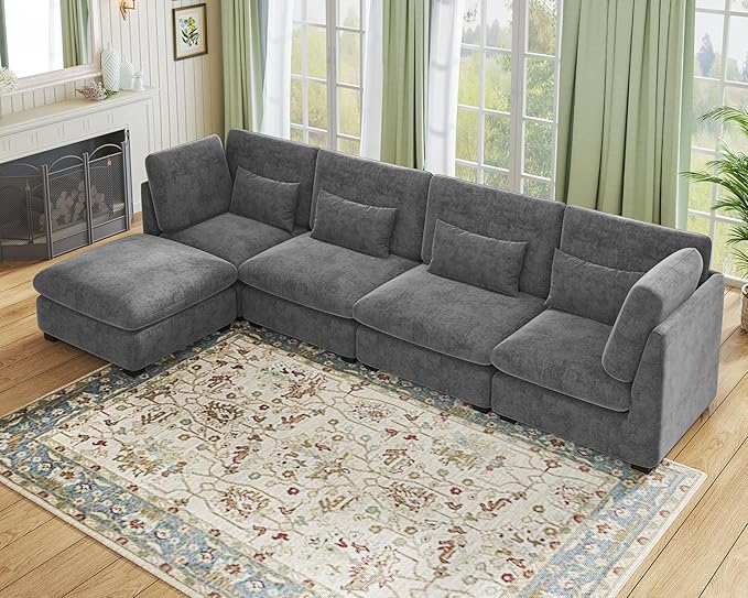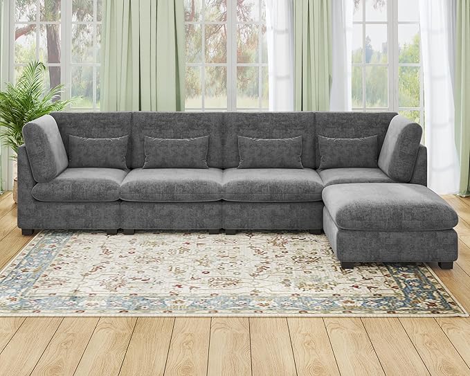 - 【Tool-Free Assembly in Minutes】Assemble your sofa in no time—no tools required! The modular design allows for quick and easy setup using high-quality U-shaped stainless steel connectors, ensuring a secure fit between each module. Reconfigure your sectional effortlessly and enjoy it in as little as 20 minutes. Perfect for those who value convenience and flexibility, this sectional offers a seamless assembly experience and provides total comfort from the moment it arrives