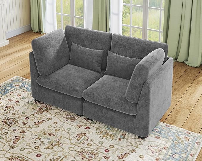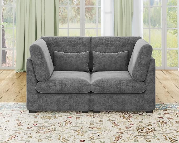 Oversized Modular Sofa, Extra Deep Cloud Chenille Sectional Couch with Ottoman Chaise, Fluffy Chenille 2 Seater Sofa Bed for Living Room, Villa (Loveseat Sofa, Chenille Grey)