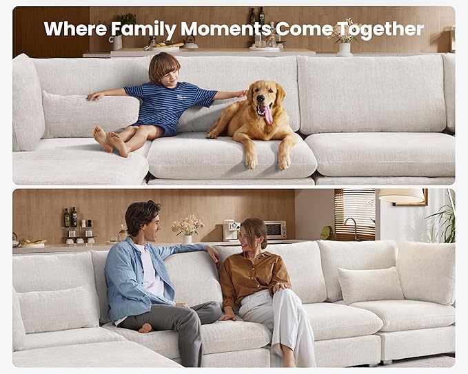 - 【Tool-Free Assembly in Minutes】Assemble your sofa in no time—no tools required! The modular design allows for quick and easy setup using high-quality U-shaped stainless steel connectors, ensuring a secure fit between each module. Reconfigure your sectional effortlessly and enjoy it in as little as 20 minutes. Perfect for those who value convenience and flexibility, this sectional offers a seamless assembly experience and provides total comfort from the moment it arrives