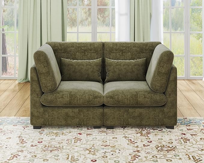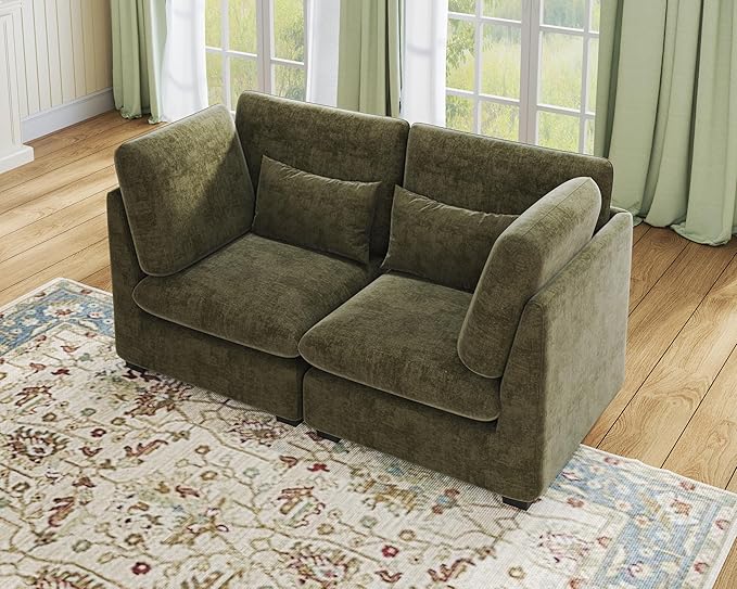 Oversized Modular Sofa, Extra Deep Cloud Chenille Sectional Couch with Ottoman Chaise, Fluffy Chenille 2 Seater Sofa Bed for Living Room, Villa (Loveseat Sofa, Chenille Green)