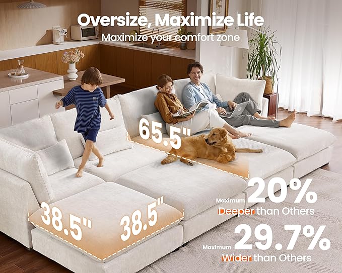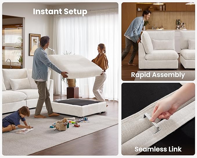 - 【Tool-Free Assembly in Minutes】Assemble your sofa in no time—no tools required! The modular design allows for quick and easy setup using high-quality U-shaped stainless steel connectors, ensuring a secure fit between each module. Reconfigure your sectional effortlessly and enjoy it in as little as 20 minutes. Perfect for those who value convenience and flexibility, this sectional offers a seamless assembly experience and provides total comfort from the moment it arrives
