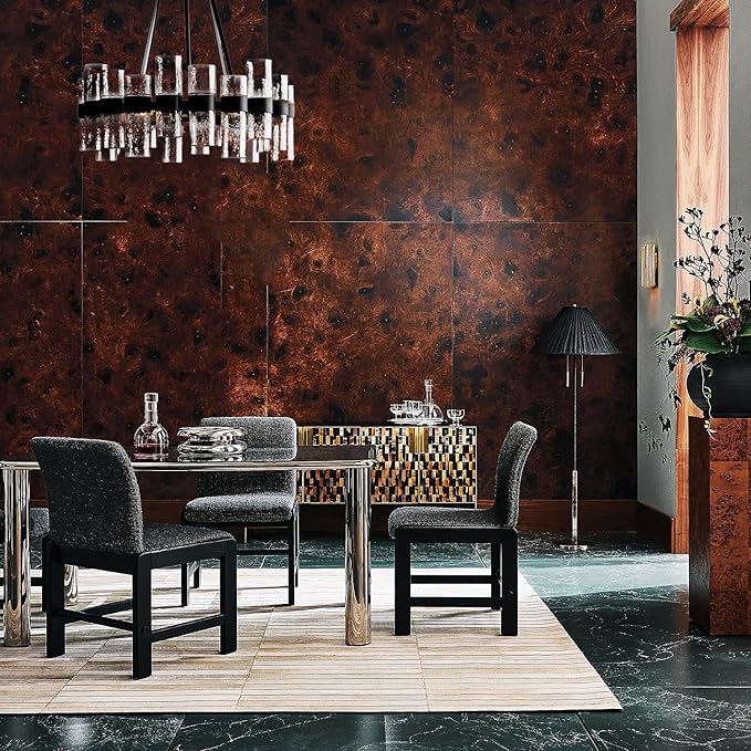 - [Premium Matrial] Made from recycled glass and a durable steel-brass frame, this chandelier showcases glass cylinders in bronzed-metal sleeves. The design creates an industrial glow while maintaining an elegant aesthetic