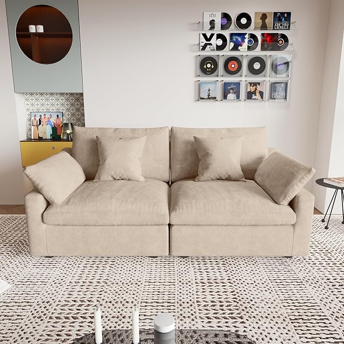 - ⛅[Comfortable Cushions]The cushion of this modular sofa is filled with down and velvet, increasing the comfort and rebound performance of the sofa cushion, bringing you a more comfortable sitting and lying feeling, allowing you to relax completely on the cloud sofa.